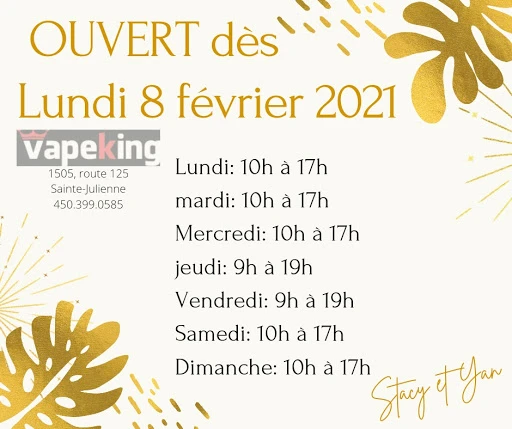 - Website : https://vapeking.ca/en/19-magasins/12-ste-julienne